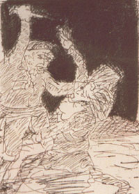 4 Radierungen zu Georg Büchners "Woyzek", gerahmt
